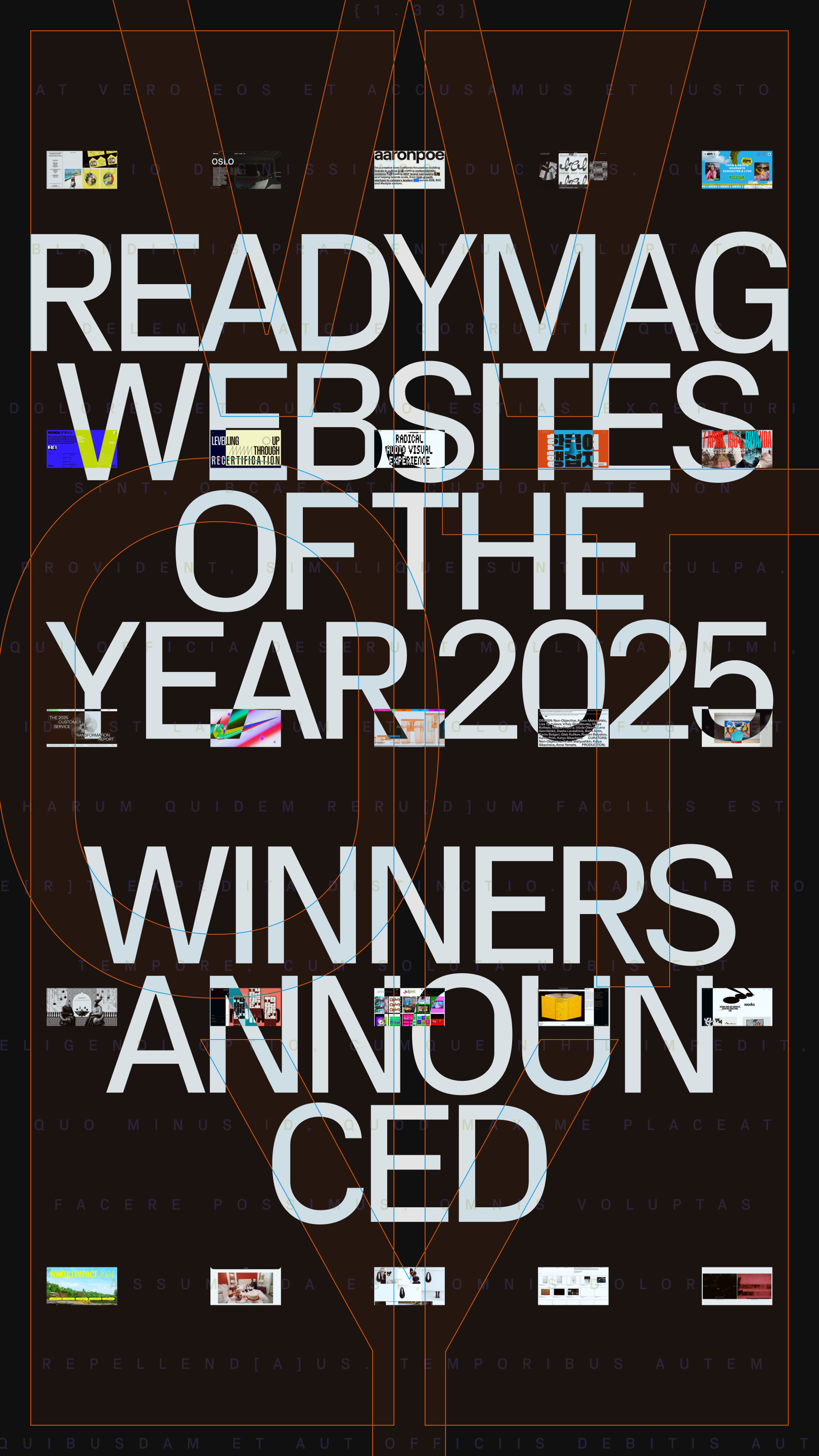 Websites of the Year is an annual award presented to outstanding designs created with Readymag. The award recognizes projects for visual expressiveness, design innovation, content, and narrative. The mission of Websites of the Year is to orient designers within the evolving landscape of web design, spotlighting standout examples and celebrating the community’s achievements.